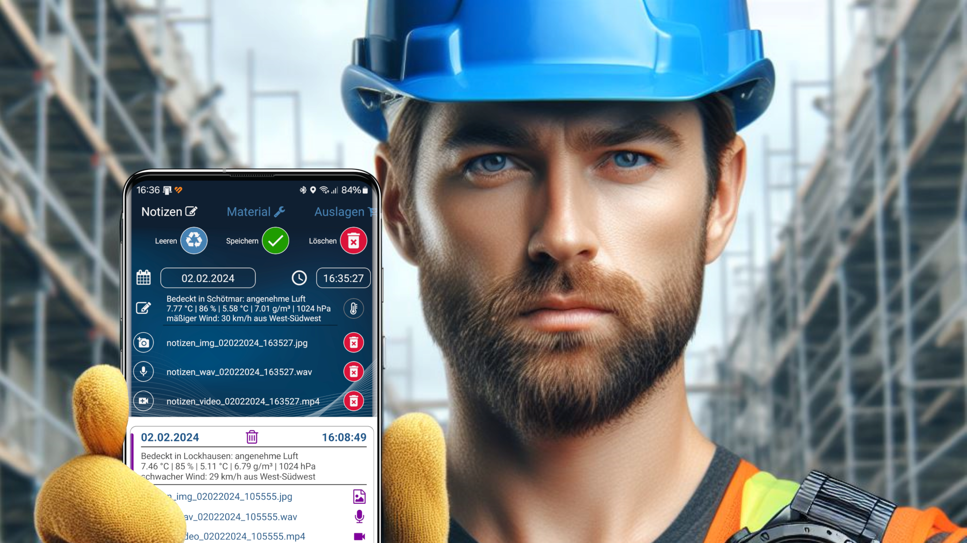 Auf der Startseite befindet sich die Wetteranzeige einer umliegenden Wetterstation in ihrer Nähe, die Sie per GPS, geziehlt auswählen können.